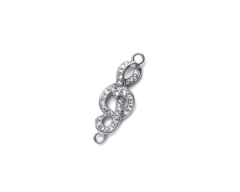 Коннектор "Скрипичный ключ" с микроинкрустацией /серебристый, 10*27 мм/