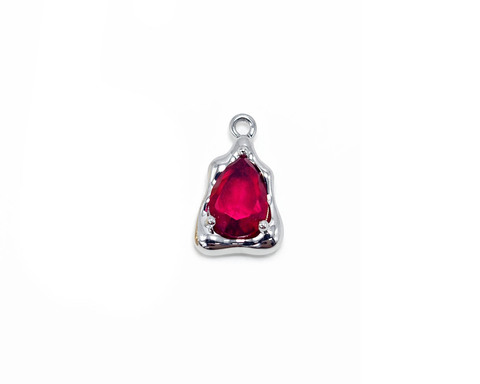 Подвеска "Aura" красная с кристаллом /серебристая, 9*14 мм/