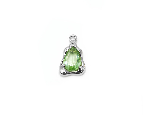 Подвеска "Aura" салатовая с кристаллом /серебристая, 9*14 мм/