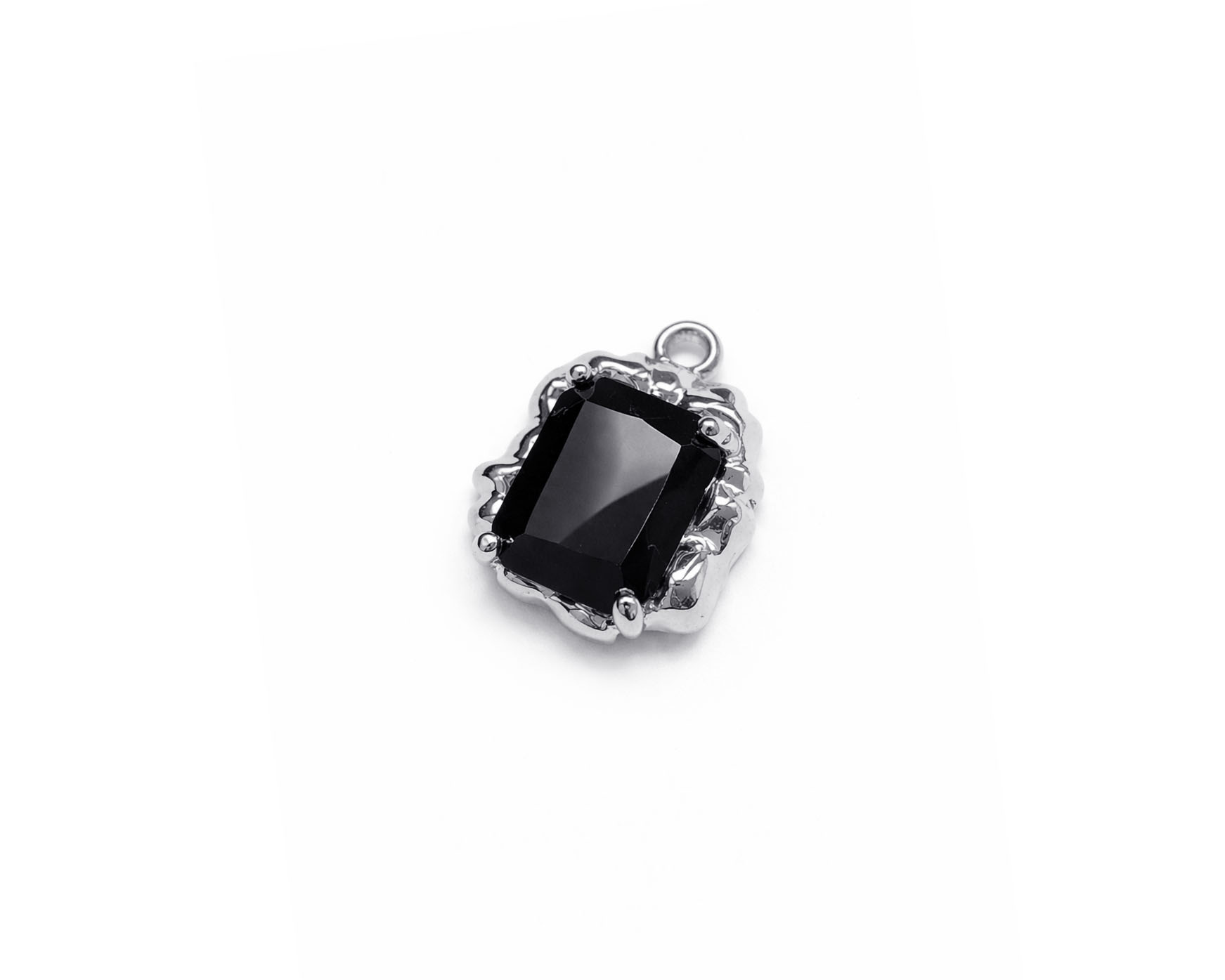 Подвеска "Mirror" с чёрным кристаллом /серебристая, 12*13 мм/