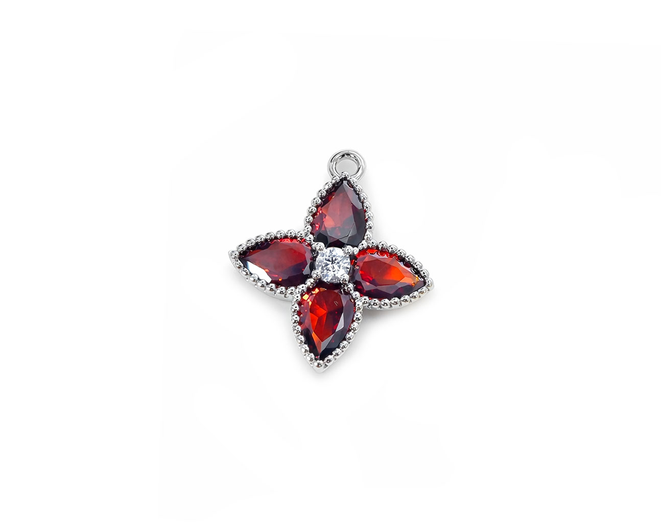 Подвеска "Сирень" красная с кристаллом /серебристая, 16 мм/