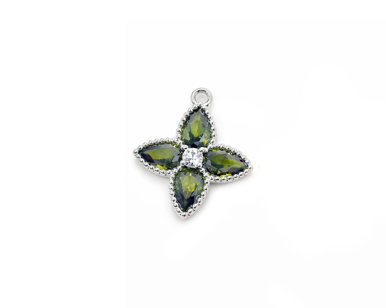 Подвеска "Сирень" зелёная с кристаллом /серебристая, 16 мм/