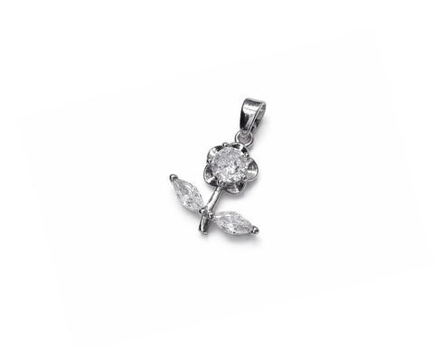 Подвеска "Цветочек" с цирконами /серебристая, 14*20 мм/