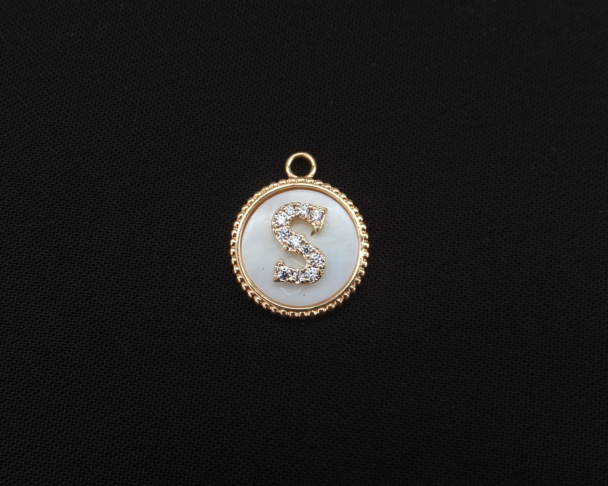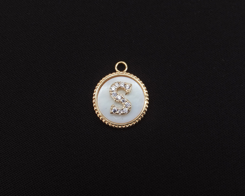 Подвеска "Буква S" инкрустированная фианитами с перламутром /позолоченная, 14 мм/