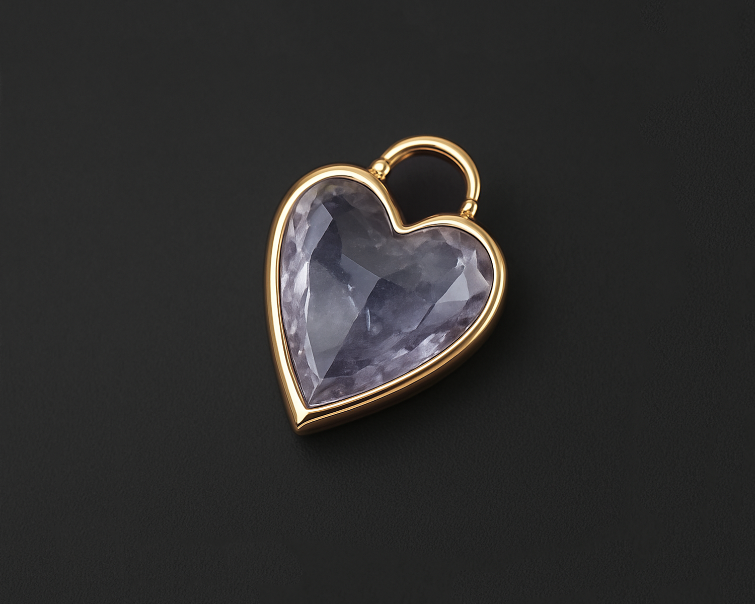 Подвеска Сердце граненая из лаванд. аметиста в оправе /позолоченная, 24*20 мм/
