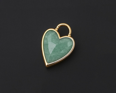 Подвеска Сердце граненая из нефрита в оправе /позолоченная, 24*20 мм/