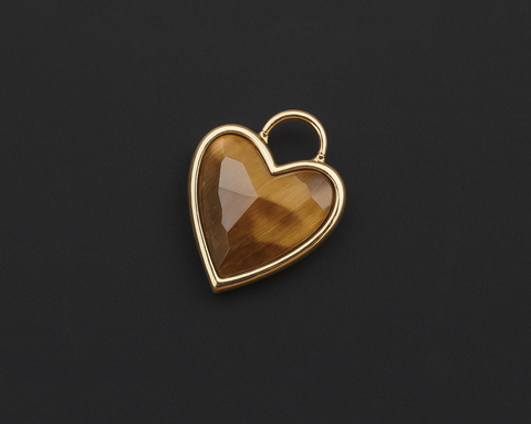 Подвеска Сердце граненая из тигрового глаза в оправе /позолоченная, 24*20 мм/