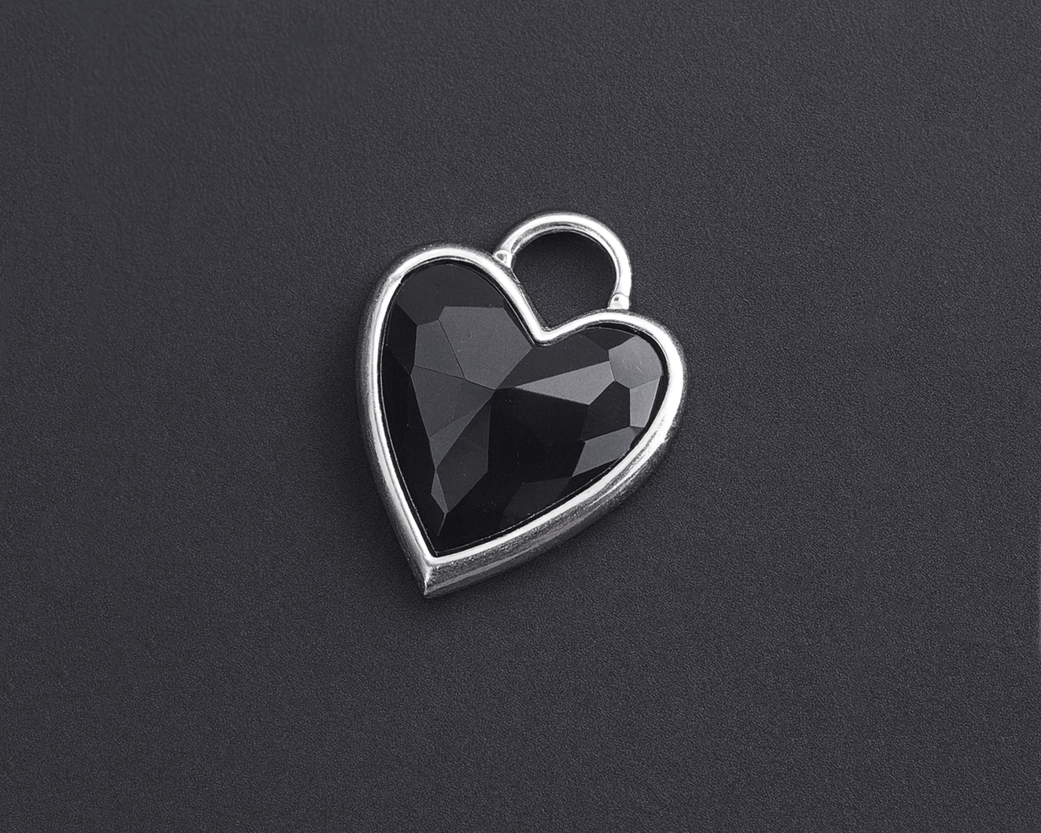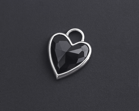 Подвеска Сердце гранёная из чёрного агата в оправе /серебристая, 24*20 мм/