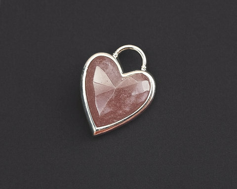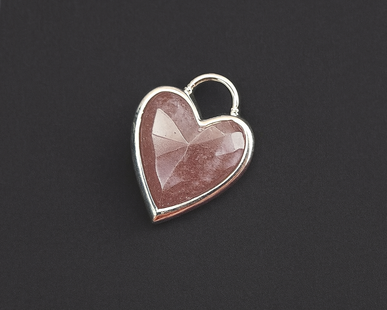 Подвеска Сердце гранёная из клуб. кварца в оправе /серебристая, 24*20 мм/
