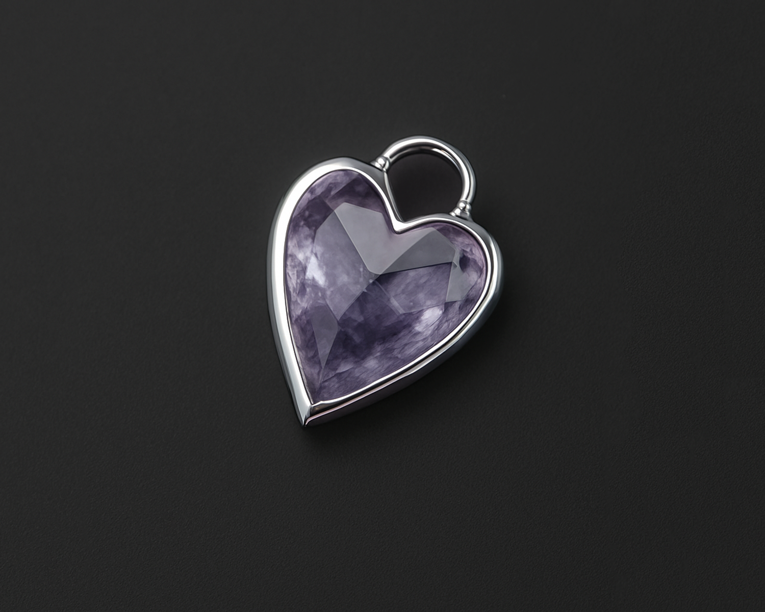 Подвеска Сердце гранёная из лаван. аметиста в оправе /серебристая, 24*20 мм/