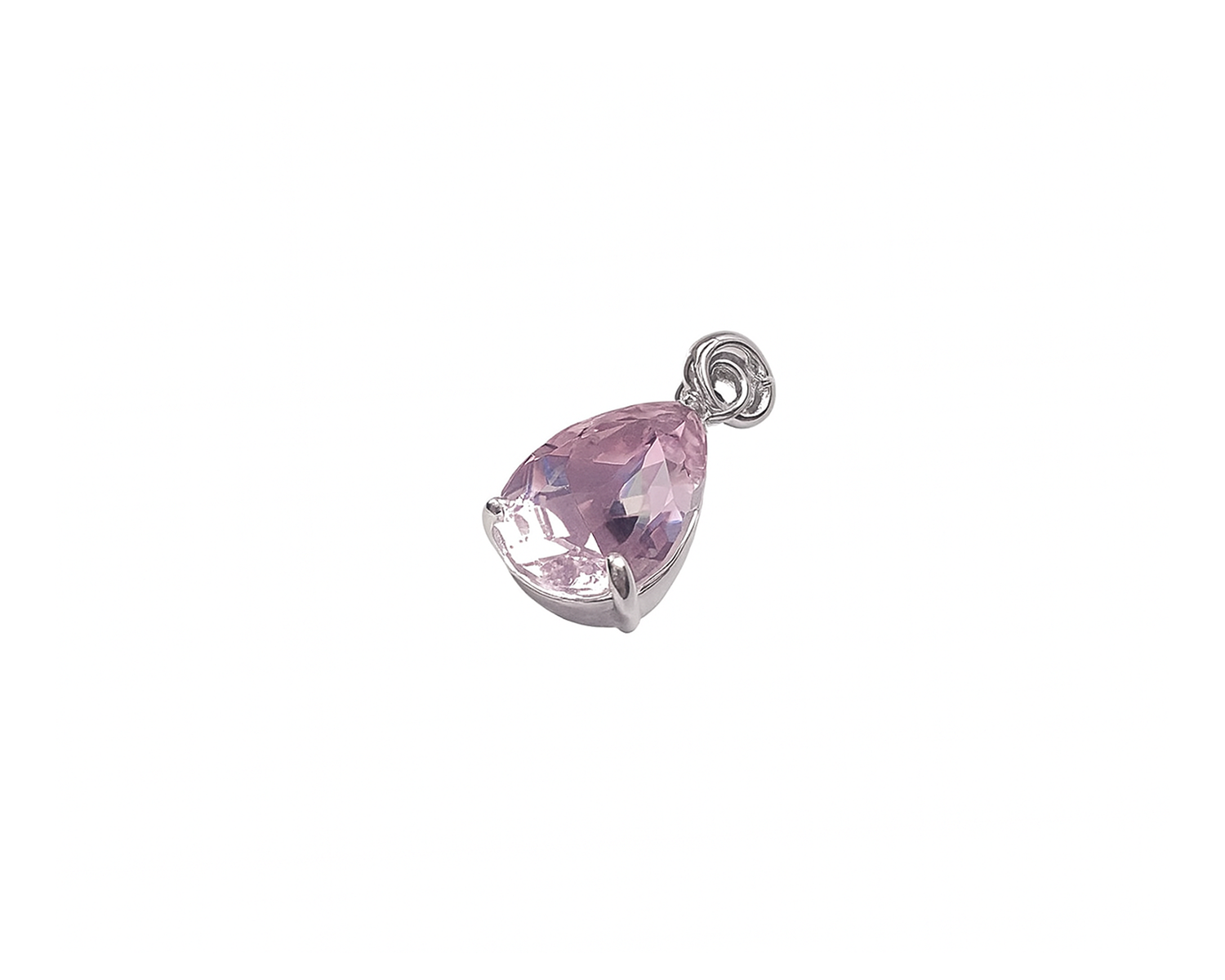Подвеска "Бриолет" капля с розовым кристаллом /серебристая, 6*10 мм/