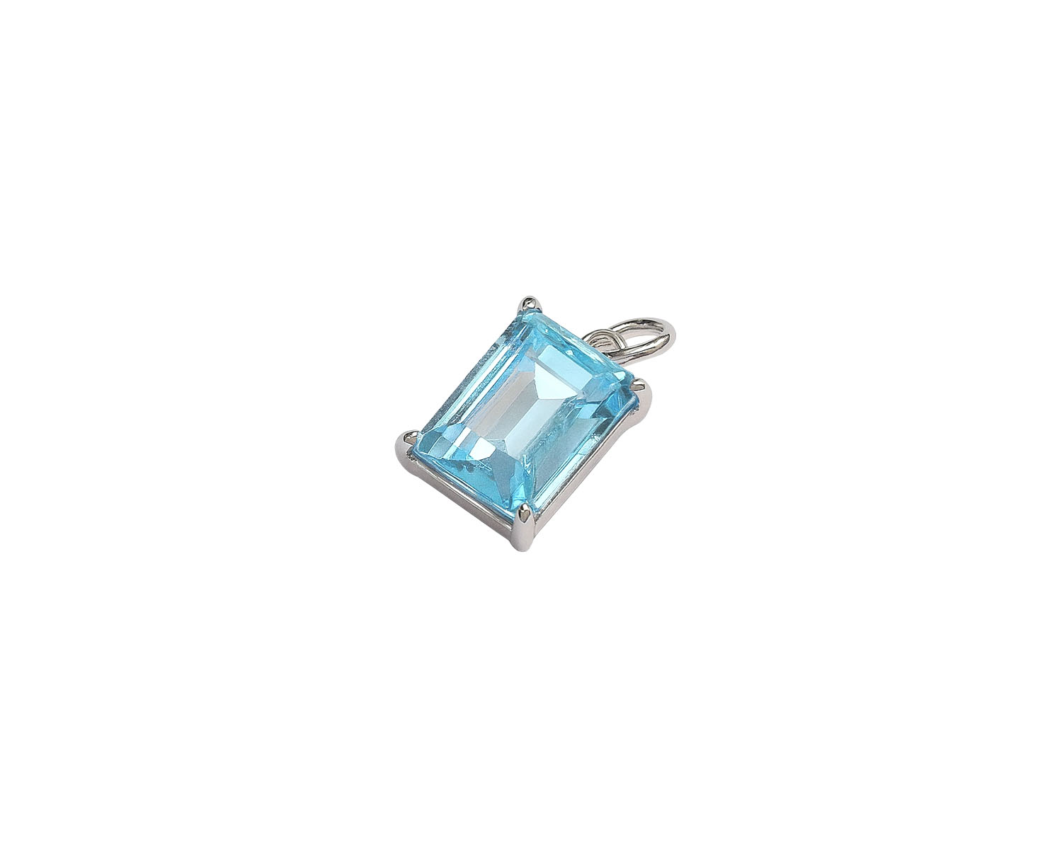 Подвеска "Бриолет" прямоуг. с аквамарин. кристаллом /серебристая, 7*10 мм/