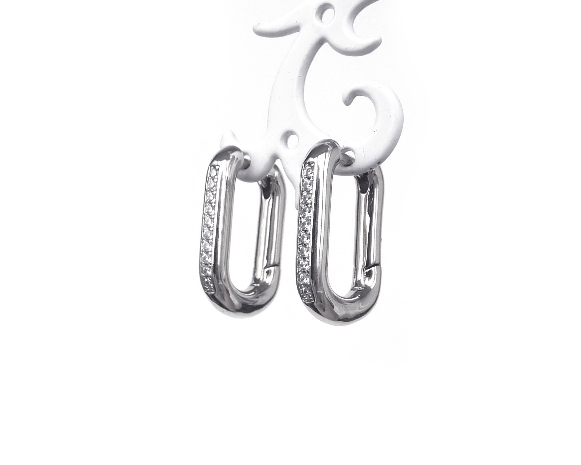 Пуссеты Челночок родированные с фианитами LUX сред. /1 пара, 15*20 мм/