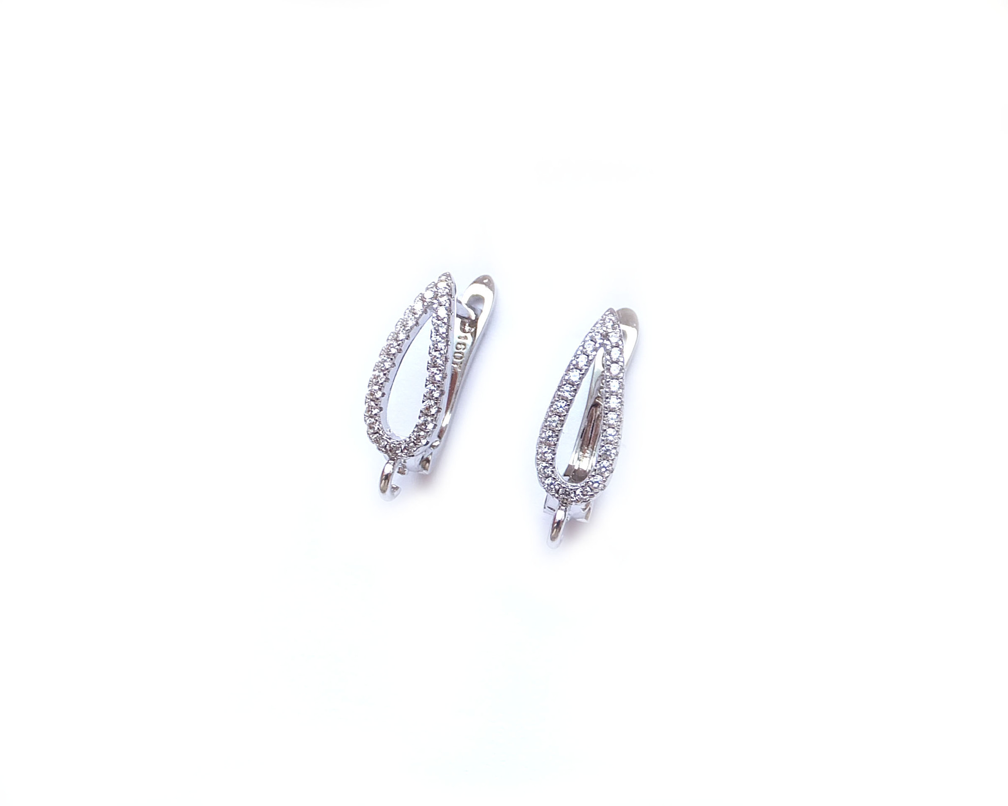 Швензы "Капля" с цирконами родированные /1 пара, 18 мм/