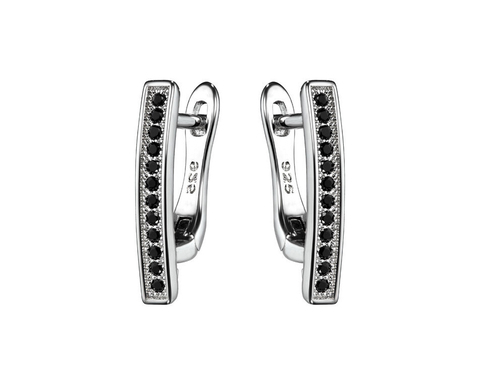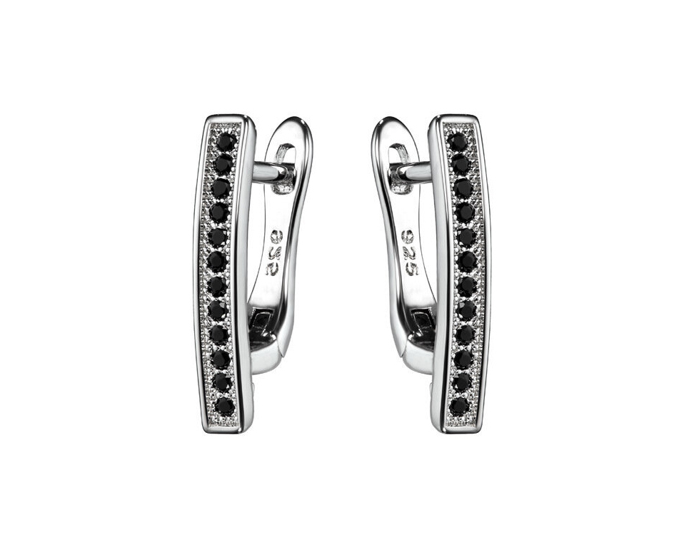 Швензы "Viva" с чёрными фианитами англ.замок родированные /1 пара, 18 мм/