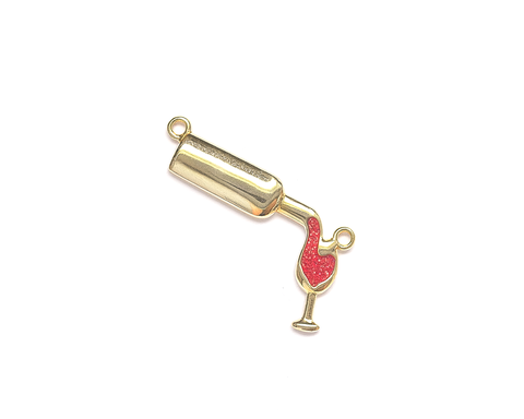 Коннектор "Бутылка вина" инкрустированный цирконами /позолоченный, 20*24 мм/